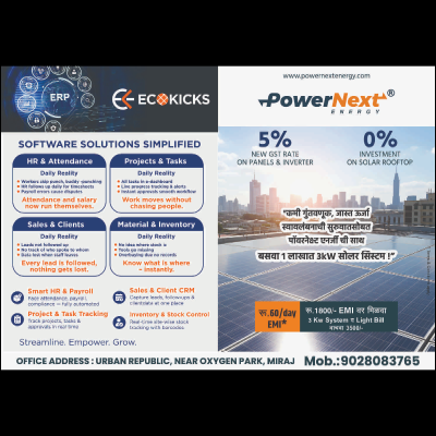 Power Next Energy is a solar and renewable energy company headquartered in Miraj, Maharashtra, with an office located in the Urban Republic Township, Near Oxygen Park, Miraj. The company's full registered name is Powernext Energy and Power Solutions LLP. Company Profile Name: Powernext Energy and Power Solutions LLP Industry: Renewables & Environment, Solar Energy Service, EV Charging Solutions Headquarters/Primary Office: 1, Lokmanya society, Pandharpur road, Miraj, Maharashtra, IN 416410 (Note: They also list an office at Urban Republic, Near Oxygen Park, Miraj) Founded: 2017 Company Size: 11-50 employees Type: Privately Held, Limited Liability Partnership (LLP) Founders: Pranav Patwardhan (Founder), Pratish Patwardhan, and Pooja Patwardhan Website: http://www.powernextenergy.com Email: info.powernext@gmail.com Contact Information General Inquiries/Solar Office: +91 9028083764 Solar Sales/Customer Care: +91 9028083765, +91 9028083762 Other Contact: +91 8308381188